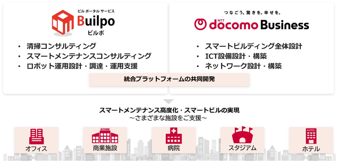 株式会社ビルポ(以下 ビルポ)とNTTドコモビジネス株式会社(旧 NTTコミュニケーションズ株式会社、以下 NTTドコモビジネス)は、2025年6月にビルメンテナンスDX(デジタルトランスフォーメーション)領域における協業(以下 本協業)を開始しました。